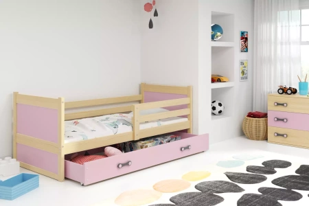 Rico jednolôžková posteľ pre dospievajúcich 90x190 so zásuvkou, borovicová/ružová
