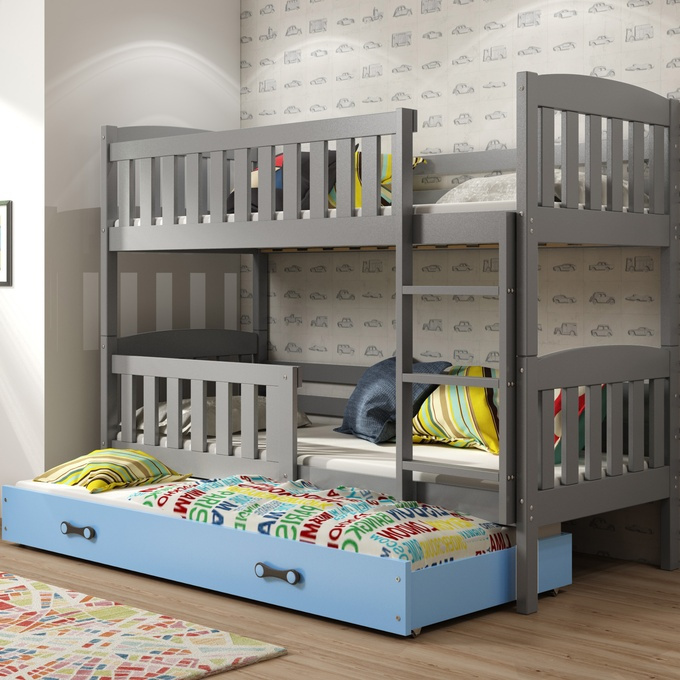 Trojlôžko KUBUŚ 90X200 s matracom a zásuvkou, grafit/modrá