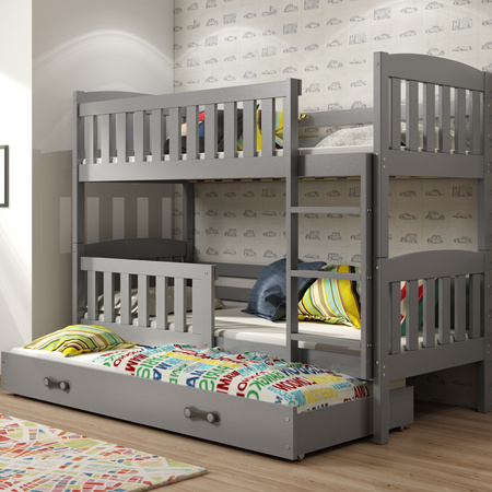 Trojmiestna posteľ pre mladých KUBUŚ 90X190 s matracom a zásuvkou, grafit