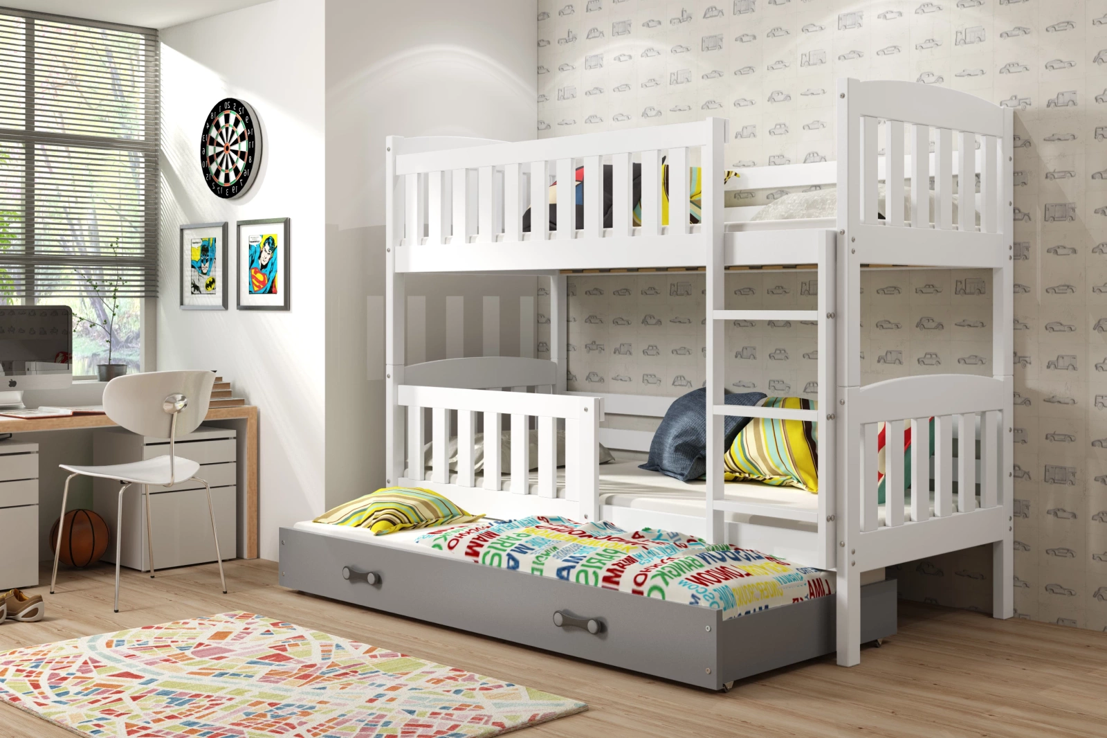 Trojmiestna posteľ pre mladých KUBUŚ 90X200 s matracom a zásuvkou, biela/grafit