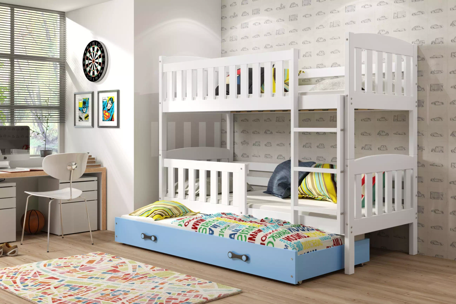 Trojmiestna posteľ pre mladých KUBUŚ 90X200 so zásuvkou, biela/modrá