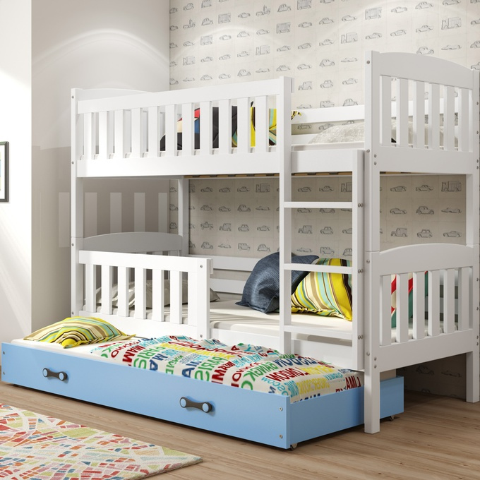 Trojposteľ KUBUŚ 90X190 so zásuvkou, biela/modrá