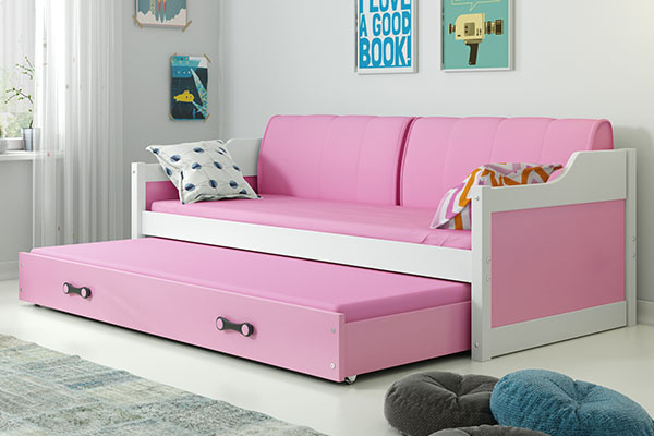Výsuvná posteľ pre mladých DAWID 90X200 s matracom a zásuvkou, biela/ružová