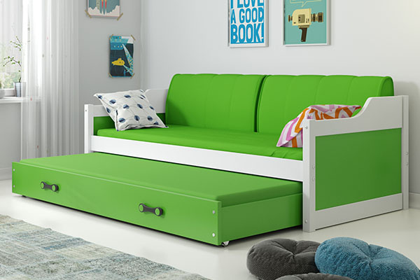 Výsuvná posteľ pre mladých DAWID 90X200 s matracom a zásuvkou, biela/zelená