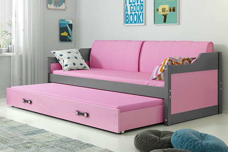 Výsuvná posteľ pre mladých DAWID 90X200 s matracom a zásuvkou, grafitová/ružová