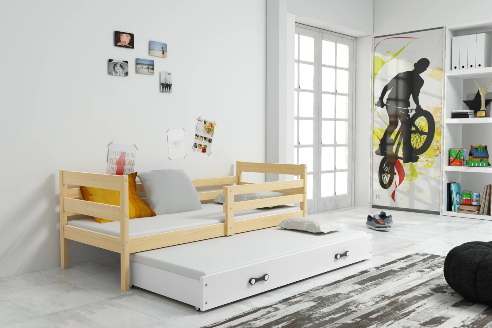 Výsuvná posteľ pre mladých ERYK 80X190 s matracom a zásuvkou, borovicová/biela