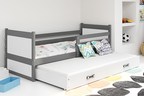 Výsuvná posteľ pre mladých RICO 90X200 s matracom a zásuvkou, grafit/biela