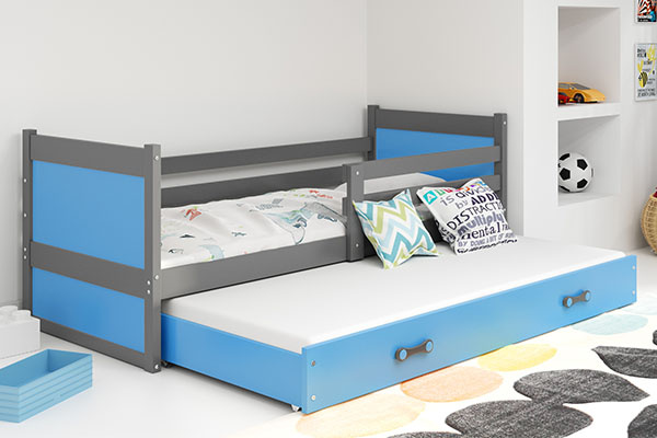 Výsuvná posteľ pre mladých RICO 90X200 s matracom a zásuvkou, grafit/modrá
